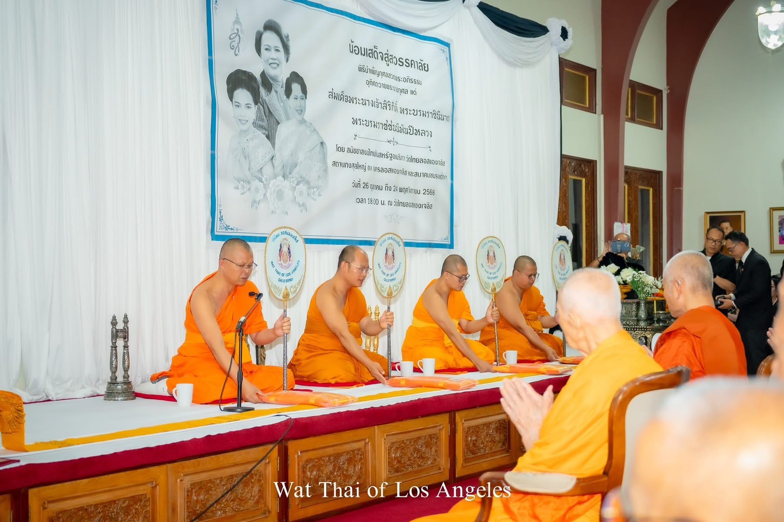 วันที่ 26 ตุลาคม พ.ศ. 2568 วัดไทยลอสแองเจลิสได้จัดพิธีบำเพ็ญกุศลสวดพระอภิธรรม อุทิศถวายพระราชกุศล แด่สมเด็จพระนางเจ้าสิริกิติ์ พระบรมราชินีนาถ พระบรมราชชนนีพันปีหลวง โดยมีท่านต่อ ศรลัมพ์ กงสุลใหญ่ ประจำนครลอสแองเจลิส เป็นประธานในพิธี พร้อมด้วยเจ้าหน้าที่ข้าราชการ คณะครู บุคลากรภายในวัด และประชาชนทั่วไป เข้าร่วมแสดงความจงรักภักดี และน้อมรำลึกในพระมหากรุณาธิคุณอันหาที่สุดมิได้ ภายในพิธี ประกอบด้วยการยืนสงบนิ่งเพื่อแสดงความอาลัยและสำนึกในพระมหากรุณาธิคุณ ตลอดจนการแสดงวีดีทัศน์พระราชประวัติ และพระราชกรณียกิจที่ทรงบำเพ็ญเพื่อประโยชน์สุขของปวงชนชาวไทย โดยเฉพาะด้านการอนุรักษ์ศิลปวัฒนธรรมไทย การส่งเสริมอาชีพของประชาชน และการอนุรักษ์ทรัพยากรธรรมชาติของพระองค์ท่าน ผู้ทรงเป็นแบบอย่างของความเสียสละ ความรักชาติ และความห่วงใยในประชาชนชาวไทย บรรยากาศภายในงานเป็นไปด้วยความสงบ สำนึกในพระมหากรุณาธิคุณ และเต็มไปด้วยความจงรักภักดีต่อสถาบันพระมหากษัตริย์🙏🏻ทั้งนี้การสวดพระอภิธรรมจะจัดขึ้นทุกวันระหว่างวันที่ 26 ตุลาคม - 24 พฤศจิกายน 2568 เวลา 18.00 น. ณ พระอุโบสถวัดไทยลอสแองเจลิส
