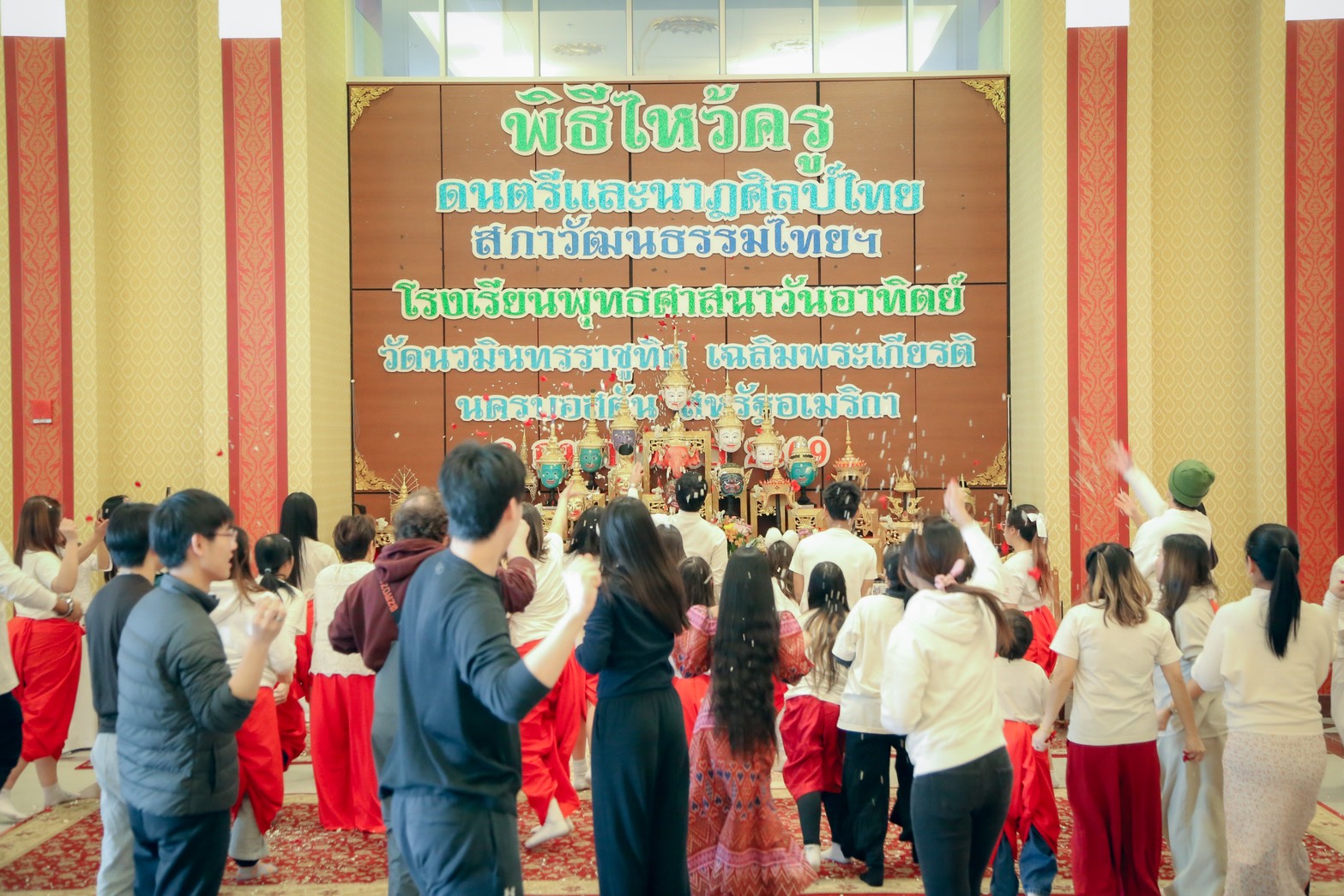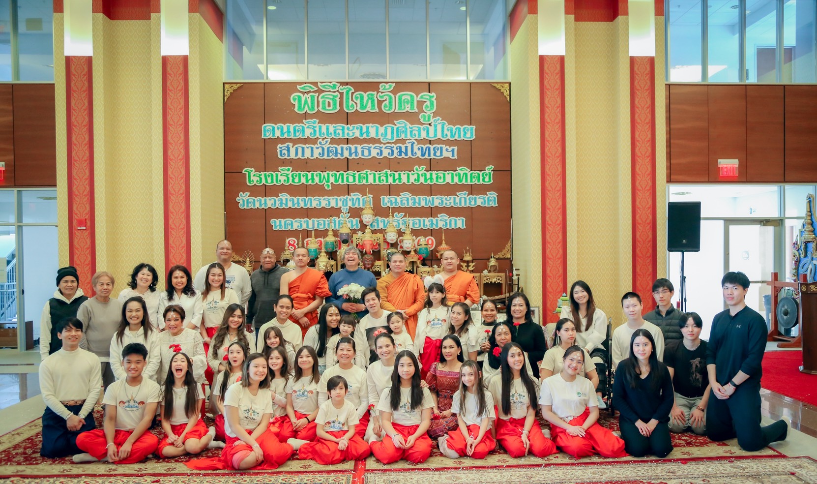 โรงเรียนพุทธศาสนาวันอาทิตย์ วัดนวมินทรราชูทิศ เฉลิมพระเกียรติ นครบอสตัน จัดพิธีไหว้ครู ประจำปีการศึกษา 2568–2569 ในวันอาทิตย์ที่ 8 กุมภาพันธ์ พ.ศ. 2569 ณ ศาลามหาวชิราลงกรณ โดยมีพระครูศรีวิชาธร เป็นประธานในพิธี พร้อมด้วยคณะสงฆ์ คณะครู นักเรียน ผู้ปกครอง และแขกผู้มีเกียรติ เข้าร่วมพิธีอย่างพร้อมเพรียง กิจกรรมในช่วงเช้าเป็นพิธีทางพระพุทธศาสนา ประกอบด้วยการทำบุญตักบาตร สวดมนต์ ฟังพระธรรมเทศนา และถวายภัตตาหารเพล เพื่อความเป็นสิริมงคลแก่ผู้เข้าร่วมพิธี จากนั้นได้ดำเนินพิธีไหว้ครูอย่างเป็นทางการ โดยนักเรียนได้กล่าวคำบูชาครู ถวายพานดอกไม้ และประกอบพิธีคำนับครู แสดงออกถึงความกตัญญูกตเวทีและความเคารพต่อครูบาอาจารย์ ภายในงานมีการแสดงศิลปวัฒนธรรมไทย การบรรเลงดนตรีและการรำถวายมือ พิธีเจิมหนังสือเรียนภาษาไทย ผู้ข้อมือรับเป็นศิษย์ มอบดอกไม้ให้พ่อแม่ที่เปรียบเสมือนครูคนแรก เพื่อส่งเสริมการอนุรักษ์วัฒนธรรมไทยและสร้างบรรยากาศที่งดงามเหมาะสมกับพิธีการ ซึ่งช่วยให้นักเรียนได้เรียนรู้และภาคภูมิใจในความเป็นไทย แม้จะอาศัยอยู่ในต่างประเทศ การจัดพิธีไหว้ครูในครั้งนี้นับเป็นกิจกรรมสำคัญที่ช่วยปลูกฝังคุณธรรม ความกตัญญู และการตระหนักถึงพระคุณของครู ช่วยส่งเสริมให้นักเรียนไทยในต่างแดนได้เรียนรู้ภาษา วัฒนธรรมไทยอันเป็นรากฐานสำคัญของการศึกษาและการดำรงไว้ซึ่งขนบธรรมเนียมประเพณีอันดีงามของไทย